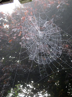 Fall it is! It seems like it all switched overnight---the temperature, at least. And it's dark at 8-ish. And the spider webs are beautiful but clogging all of our paths, and if you know the keeper, you know that she usually tries to apologize to each web she disrupts, and tries to place the remnants on a nearby branch. She also makes a suggestion that perhaps they should spin these intricate designs a little higher next time. But her question remains: do they reuse any of the broken web or do they have to start all over? The spiders aren't talking. She bought a book on spiders once, but must have loaned it out.