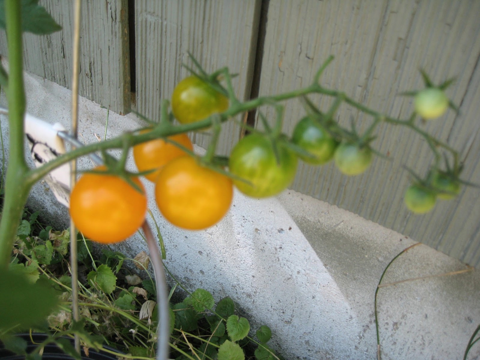 This wonderful stretch of sunniness is helping our meager garden be fruitful. The keeper had berries from our own bush on the cereal this morning and tonight there were several golden tomatoes on the salad. We didn't ask for any tastes, though.